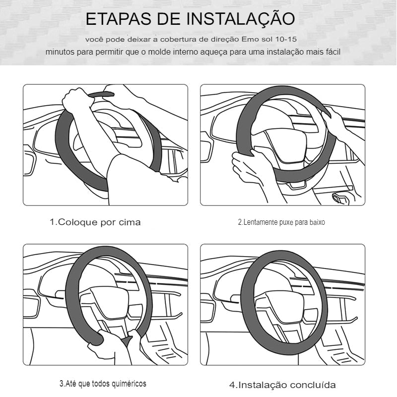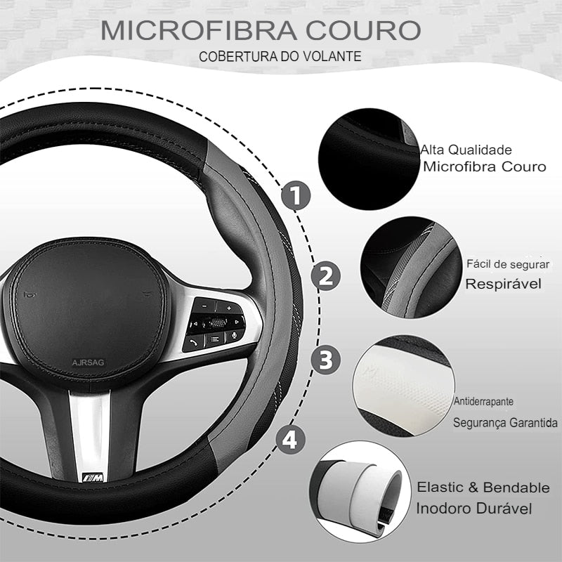 Capa de Volante Universal, Garanta um ajuste seguro e ainda mais confortável para o seu veículo com a Capa de Volante Universal. Feita de couro de microfibra de qualidade, tem 15 polegadas de ajuste universal para quase todos os carros, caminhões, SUVs e vans. Seu design durável e antiderrapante, mantém seu volante protegido.